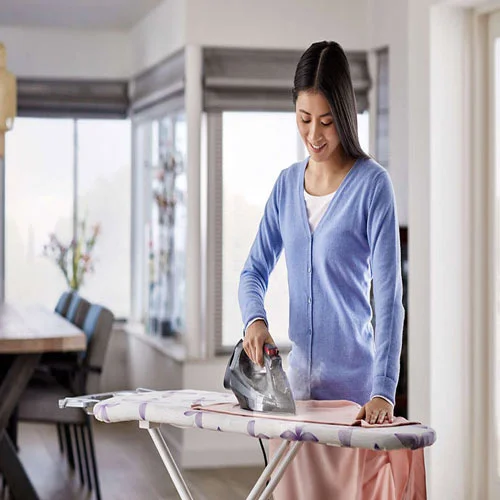 اتو کردن انواع لباس ها با بخار لذت بخش است. میز اتو انعطاف پذیر نه تنها با ارتفاع شما تنظیم می شود، بلکه می توانید زوایای آن را تنظیم کنید تا اتوکشی راحت تر شود. اتو دارای یک تنظیم دما برای همه پارچه ها است، بنابراین نیازی نیست صفحه را بر اساس موادی که با آن کار می کنید تنظیم کنید.