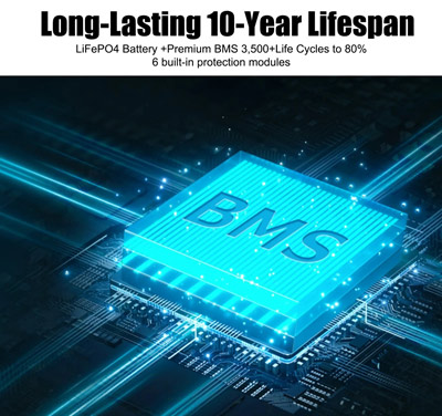 این پاور استیشن از باتریهای پیشرفته LiFePO₄ استفاده میکند که طول عمر بسیار بالایی دارند. عمر مفید باتری آن بیش از ۳۵۰۰ چرخه شارژ و دشارژ است، به این معنی که پس از این تعداد چرخه، همچنان ۸۰٪ از ظرفیت اولیه خود را حفظ میکند. با استفاده معمولی، این باتری میتواند برای سالها بدون افت محسوس در عملکرد، به شما خدمت کند.