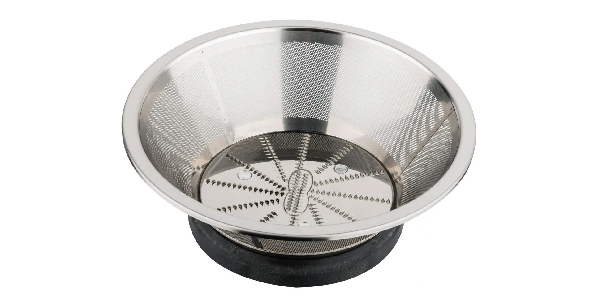 این آبمیوه گیردارای دهانه بزرگی بوده و به راحتی می توان میوه ها را بصورت کامل درون آن قرار داد،همچنین آبمیوه گیری دارای توری استیل ضد زنگ بوده و تیغه های تیز آن براحتی هر میوه ای را خرد کرده آبگیری میکند.