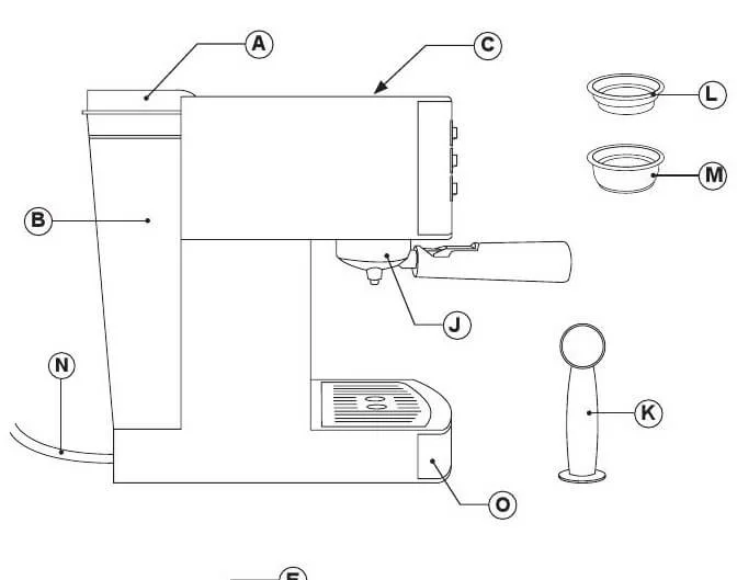 E : چراغ نشانگرآماده به کار شدن دستگاه اسپرسوساز