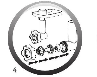 تیغه به کار رفته در چرخ گوشت دو کاره مولینکس فرانسه فولادی ضد زنگ بوده که دارای استحکام بالایی می باشد. محل قرارگیری تیغه بر روی شفت چرخ گوشت به صورت زیر می باشد.